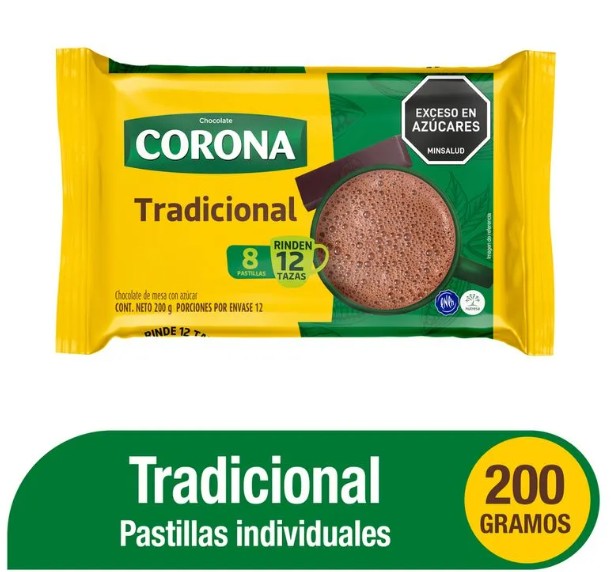 CHOCOLATE CORONA 200 GR X 8 PASTILLAS
